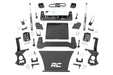 Explore New Heights. With the rise of the new generation Chevy decided that it was time to redesign one of their most beloved trucks and tap into some familiar technology by utilizing rear composite leaf springs. Chevy's fourth generation 1500 features an impressive all-new design that's built from the ground up with aggressive angles and head-turning stylings that fit in beautifully when transformed with Rough Country's 6-inch Suspension Lift. Innovative Design and Construction. When changing a vehicle's suspension the key to preserving ride quality is keeping the geometry of all suspension components as close to their factory angles as possible. With Rough Country's six-inch lift kit specifically designed for the rear mono-leaf equipped models you can rest easy knowing that everything is included for installation. This suspension kit combines the use of durable steel knuckles differential brackets and drop cross members to reduce cv angles and simulate factory angles all while achieving new heights. Featuring a set of upper strut spacers that offer uncompromised strength and rigidity gaining lift height is no issue. Completing the rear of this suspension kit is a set of rear blocks shocks and U-bolts that allow you to retain factory-like geometry. This combined setup provides enough clearance to run 35" tires without additional modifications. We didn't want to limit you to one standard kit.; Rough Country's 6-inch kit is configurable with all the shock options that we offer. This allows you to choose which shock series you want! Ranging from our nitrogen-charged N3 shocks to our Vertex reservoir shocks the power to choose is in your hands. Installation. With minor cutting and a strut compressor required to install an estimated timeframe of 8-10 hours is recommended to complete this full installation. This full kit can be installed at home and can be completed efficiently and quickly! Limited Lifetime Replacement Warranty. Rough Country's 6" Suspension Lift Kit is backed with a limited lifetime replacement warranty towards manufacturer defects. As such the product is protected from structural and workmanship damage after the date of purchase.